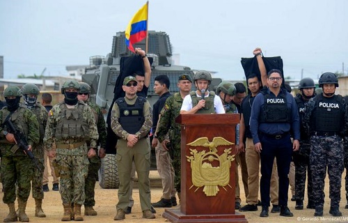 En febrero de 2025, en plena campaña electoral, el presidente Noboa propuso la presencia temporal de tropas extranjeras para reforzar la lucha contra el narcotráfico y ordenó a la Cancillería que realice gestiones con países aliados.
