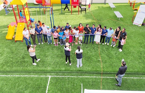 La obra, que contó con una inversión de USD 44.500 y una intervención de 465 m², incluyó la renovación completa de césped, instalación de juegos infantiles, cerramiento perimetral, pintura y colocación de bancas, generando un espacio seguro y moderno para la recreación comunitaria.