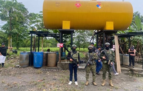 En una operación de control hidrocarburífero realizada en el sector Puerto Madero, cantón Cascales, provincia de Sucumbíos, efectivos del Ejército Ecuatoriano decomisaron aproximadamente 6000 galones de diésel almacenados de manera clandestina.