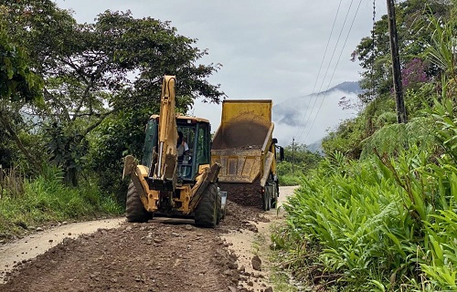 De igual manera, en el tramo Cascada El Aventurero – Puente El Maní, de 1,2 kilómetros, se llevan a cabo labores de asentamiento de mesa y lastrado. En este sector, la maquinaria utilizada incluye cinco volquetes, dos excavadoras, un tractor y una pala cargadora.