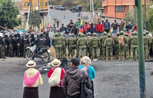 El Ejército Ecuatoriano y la Policía Nacional habilitaron la vía Riobamba-Guaranda, en el sector Vinchoa, la cual se encontraba bloqueada por manifestantes.