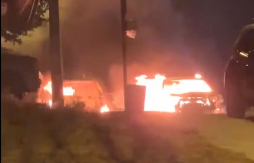 De acuerdo con videos compartidos por ciudadanos, al menos dos vehículos han resultado afectados por las llamas.