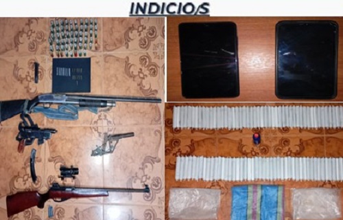 Cuatro armas de fuego de distintos calibres (rifle, subametralladora, escopeta y arma artesanal).