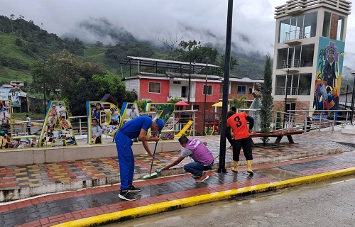 De igual manera, en El Chorro, cantón Chinchipe, la teniente política Danixa Rodríguez colaboró en la limpieza de la cancha cubierta y en el mantenimiento de las parcelas del puesto de salud local, acciones que reflejan la cooperación entre las autoridades y los habitantes.