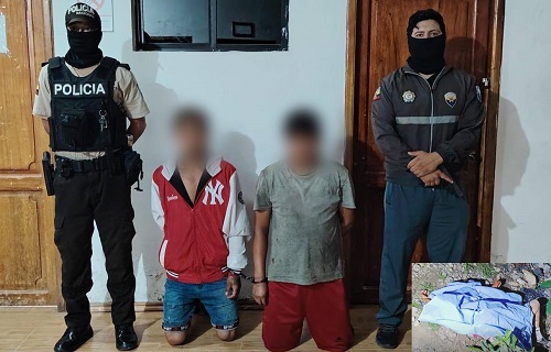 Mediante labores de inteligencia y seguimiento, la Policía Nacional del Ecuador logró la detención de dos personas presuntamente involucradas en el hecho violento registrado la noche del jueves en el cantón Centinela del Cóndor, provincia de Zamora Chinchipe, donde un ciudadano perdió la vida a causa de heridas provocadas con arma blanca.