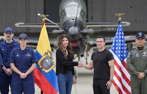 Noboa recibe a Kristi Noem en la antigua base de Manta