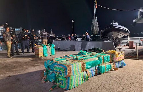 La droga y los detenidos fueron entregados a la lancha guardacostas ecuatoriana Darwin para el procedimiento legal en territorio nacional.