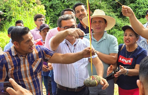 El ministro de la Amazonía, Oswaldo Valverde, colocó este miércoles «la primera piedra» que marca el inicio de la construcción del puente vehicular metálico de doble carril sobre la quebrada El Maní, en la vía que conecta las comunidades de Timbara y Tunantza Alto.