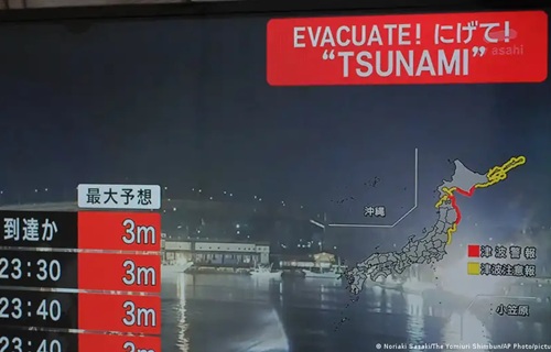 La JMA emitió una alerta de tsunami que afectó a las costas del Pacífico del archipiélago, donde se observaron subidas de la marea de hasta 70 centímetros.