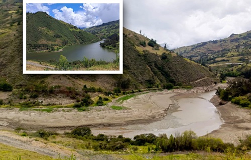 La gran cantidad de agua que se divisaba en octubre de 2025 en uno de los ríos que llegan al embalse de Mazar, en Azuay, ha disminuido tanto que ahora se ve casi seco en la zona de Bullancay, en el cantón Guachapala.