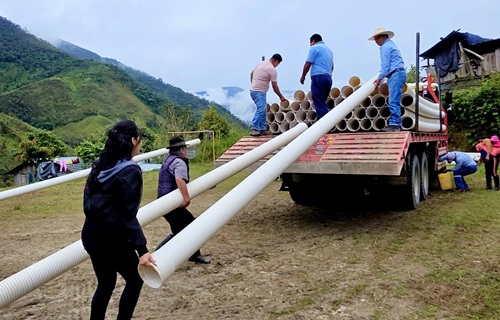 Además, como parte de esta jornada, el GAD Municipal de Zamora efectuó la entrega de 400 metros lineales de tubería corrugada al presidente de la parroquia La Victoria de Imbana, Vidal Chalán, y a los moradores del barrio Tibio Alto. Este material será utilizado para la construcción del sistema de alcantarillado sanitario del sector.