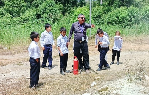 Durante la actividad, los niños y niñas recibieron capacitación práctica y supervisada sobre el manejo del extintor de polvo químico, aprendiendo la técnica correcta que incluye retirar el seguro, apuntar a la base del fuego, oprimir la palanca y realizar movimientos en zigzag. Asimismo, se enfatizó la importancia de mantener la calma y adoptar una posición segura ante una situación de emergencia.