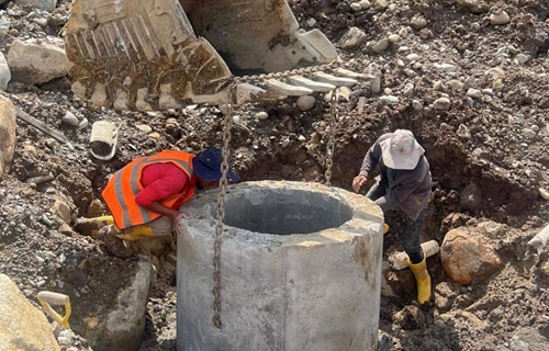 Según Juan Guamán, administrador del contrato, entre los trabajos ejecutados hasta la fecha, constan: el replanteo y nivelación del terreno, excavaciones y rellenos, instalación de 1.3 Km de tubería PVC corrugada de 110 mm y 200 mm, colocación de cajas y pozos de revisión de alcantarillado sanitario, así como la reparación de la estructura existente del sistema de agua potable. Actualmente se avanza en la construcción de la planta de tratamiento de aguas residuales, componente esencial para garantizar un adecuado manejo ambiental y sanitario.