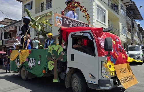 En la jornada participaron autoridades cantonales y parroquiales, así como delegaciones de unidades educativas, empresas y cooperativas locales, que se sumaron con entusiasmo al arranque de las festividades, evidenciando el compromiso de la población con su territorio.